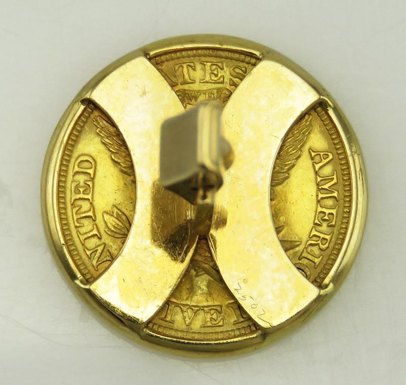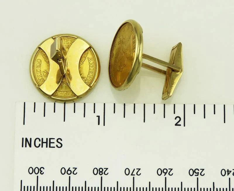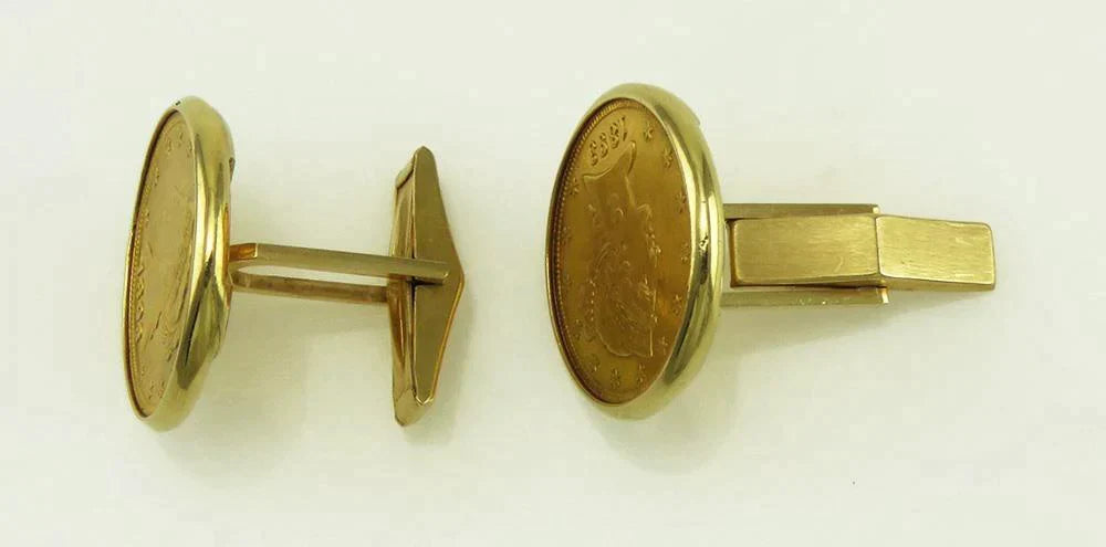 1893 USA Liberty Head Coin Yellow Gold 14K Toggle Backs Mens Cufflinks