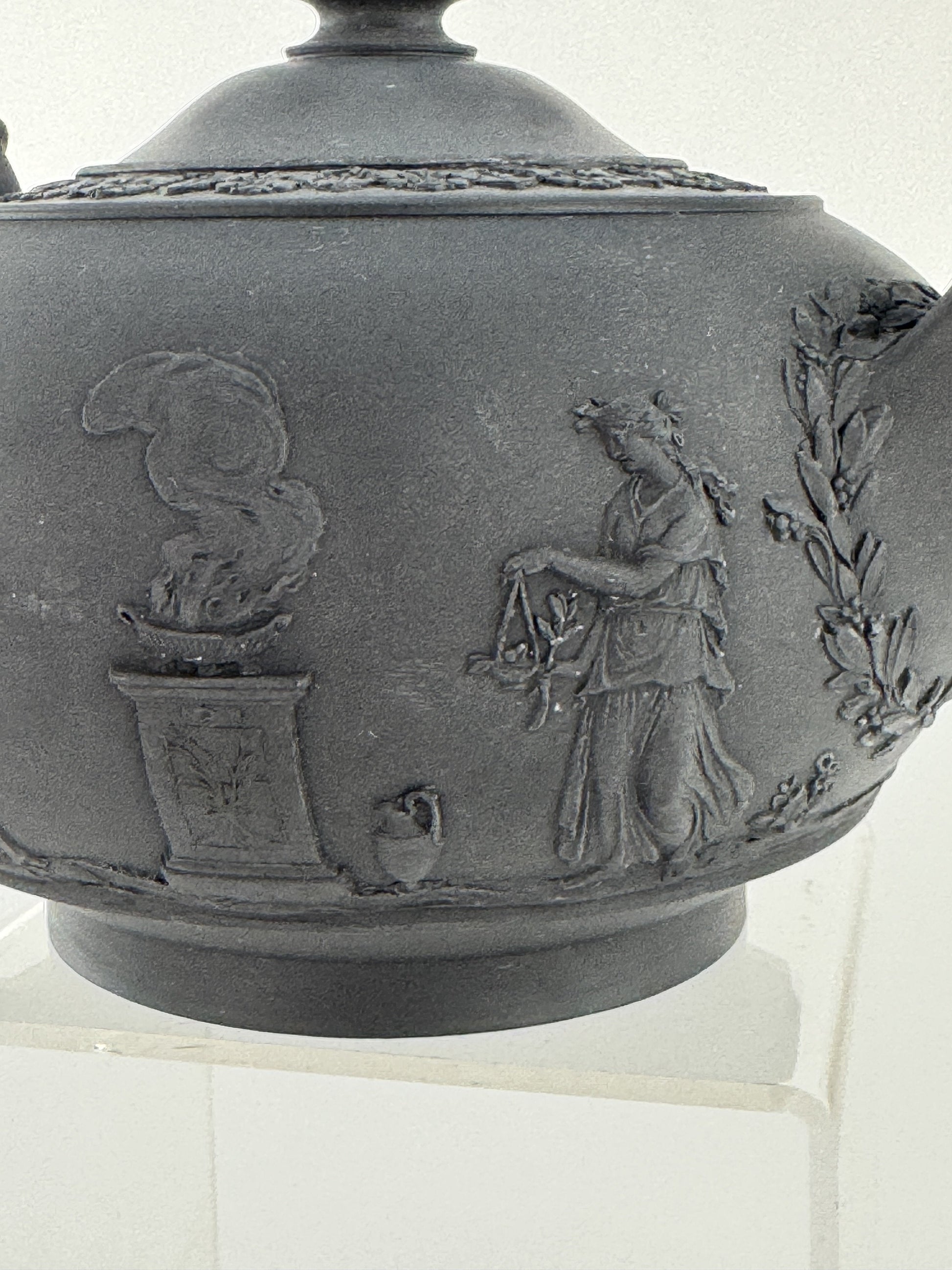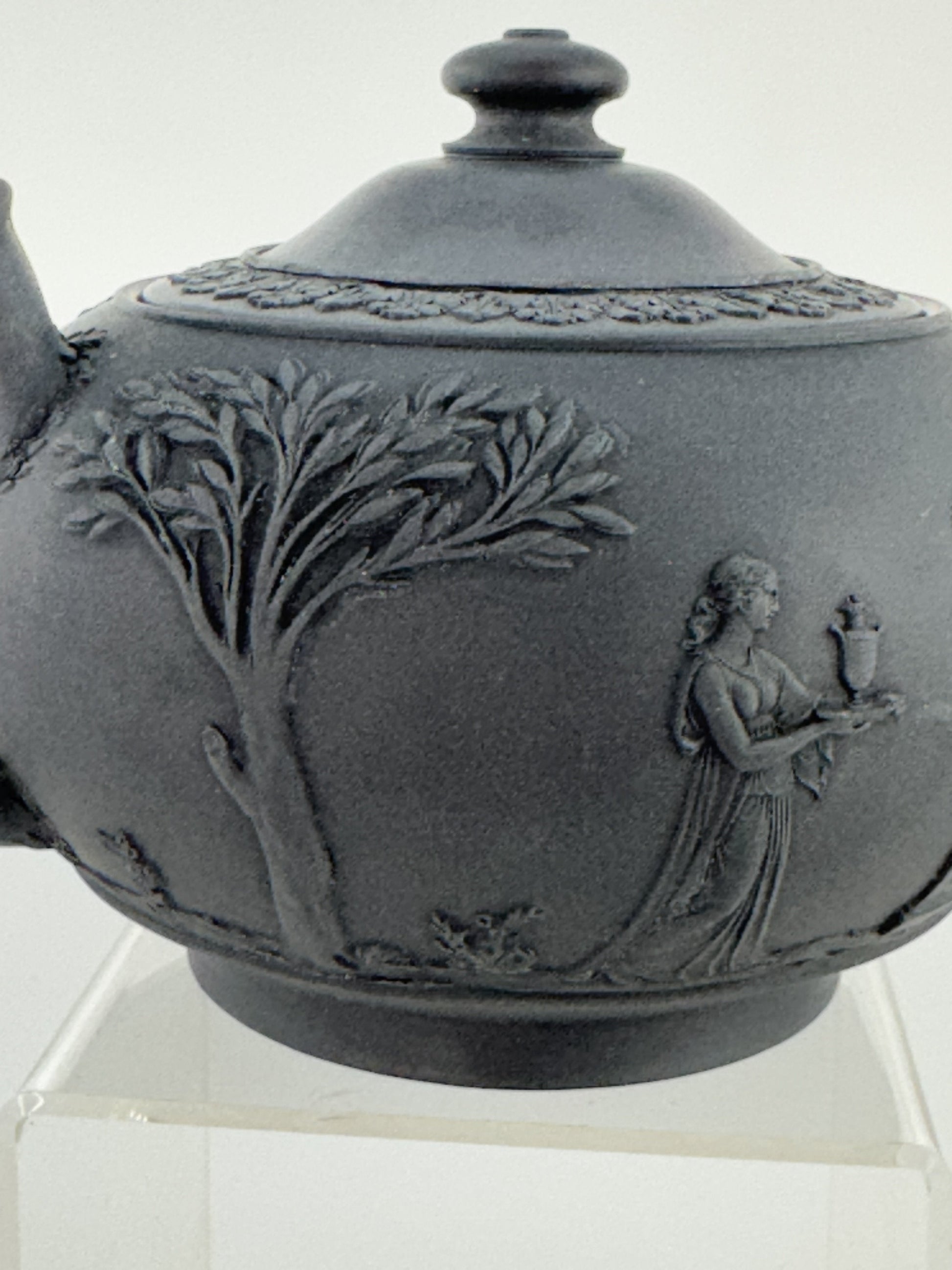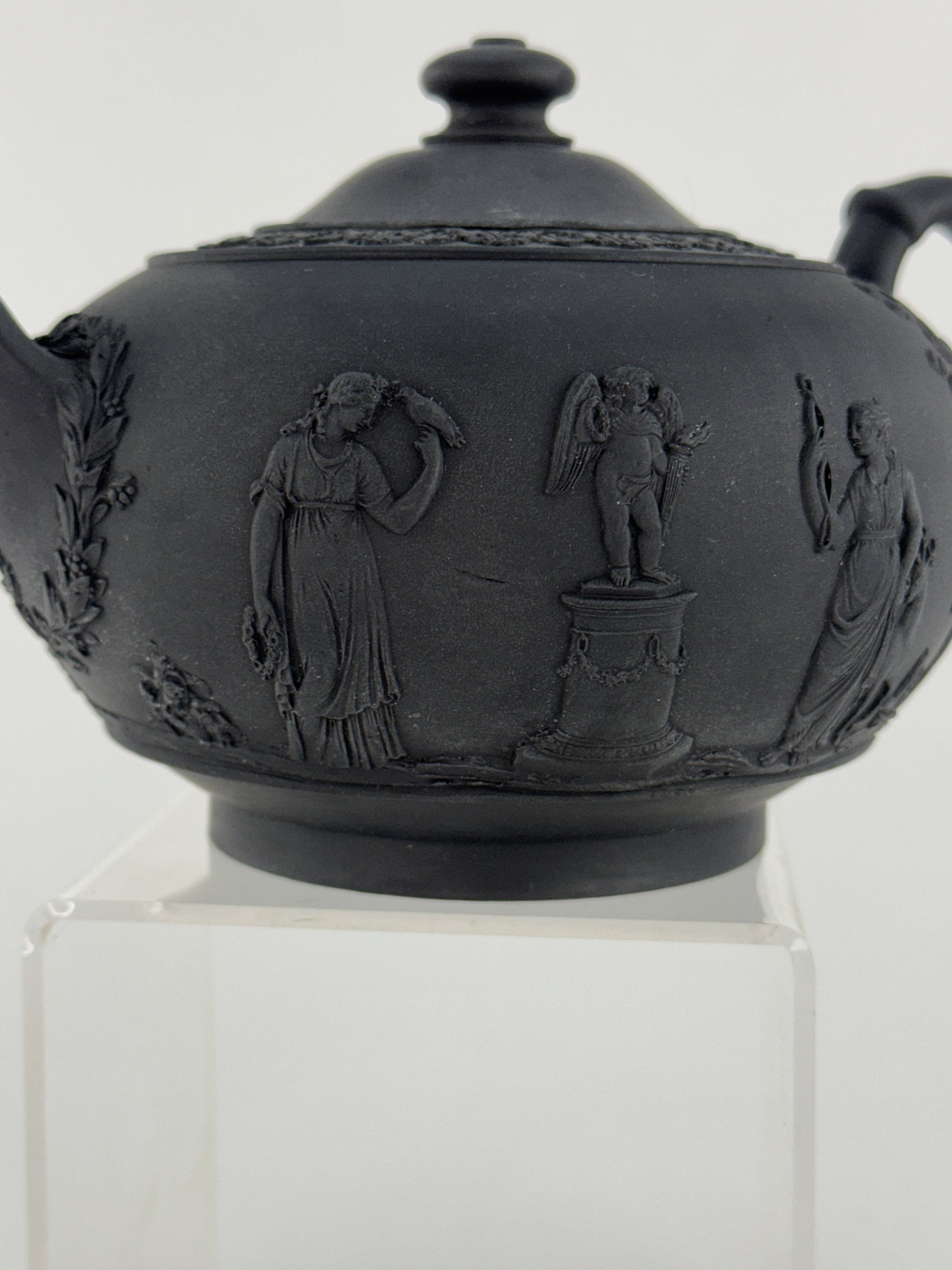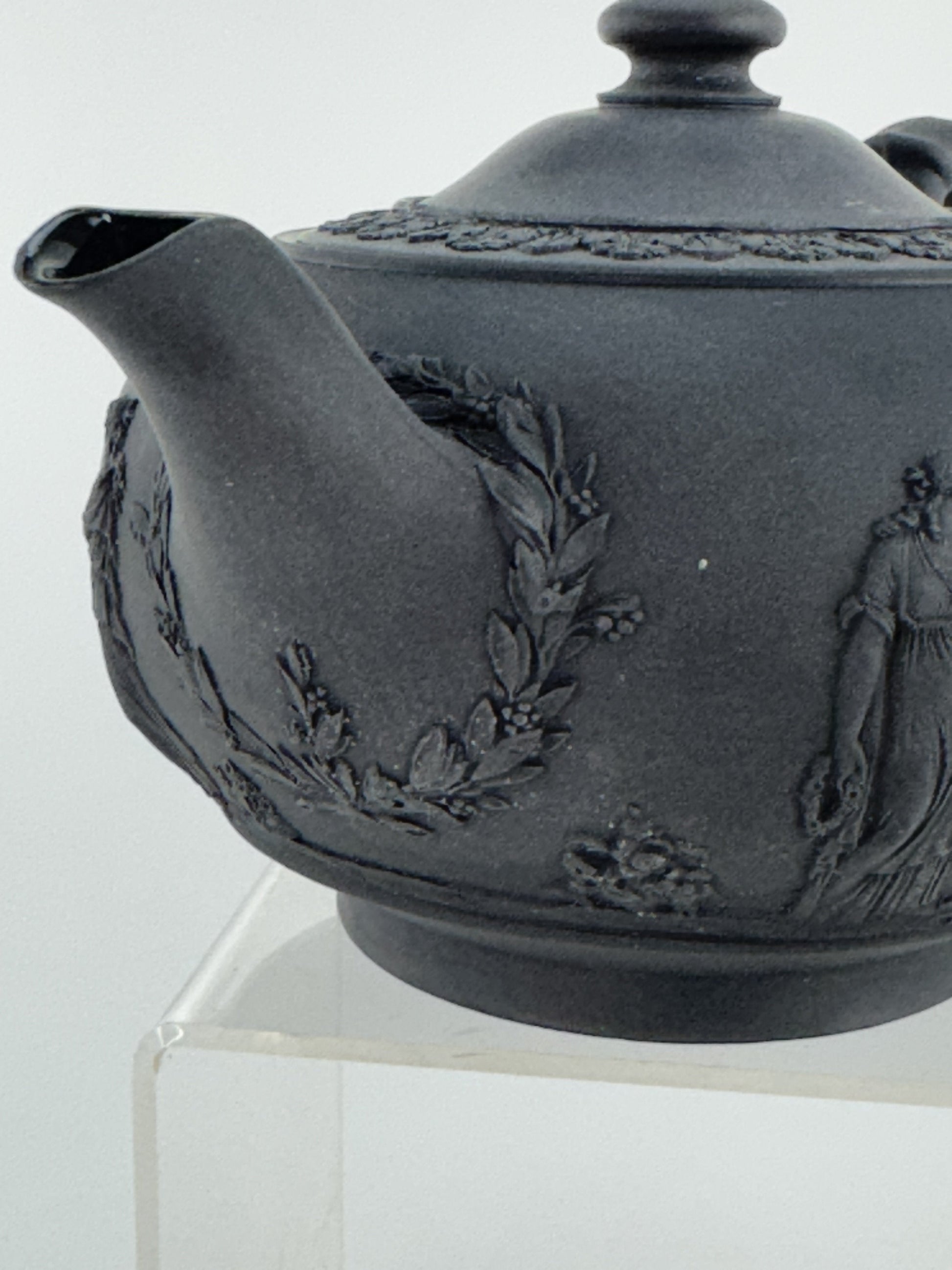 1920s Wedgwood Black Basalt Porcelain Teapot Classical Decoration