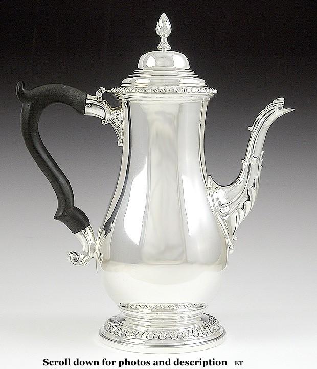 1930s-1950s American Sterling Silver Antique Georgian Form Coffeepot Teapot