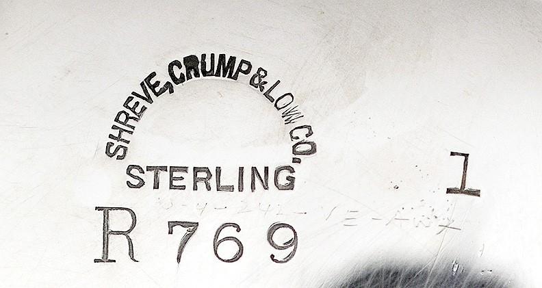 This piece is hallmarked on the underside with the mark for Shreve, Crump & Low.