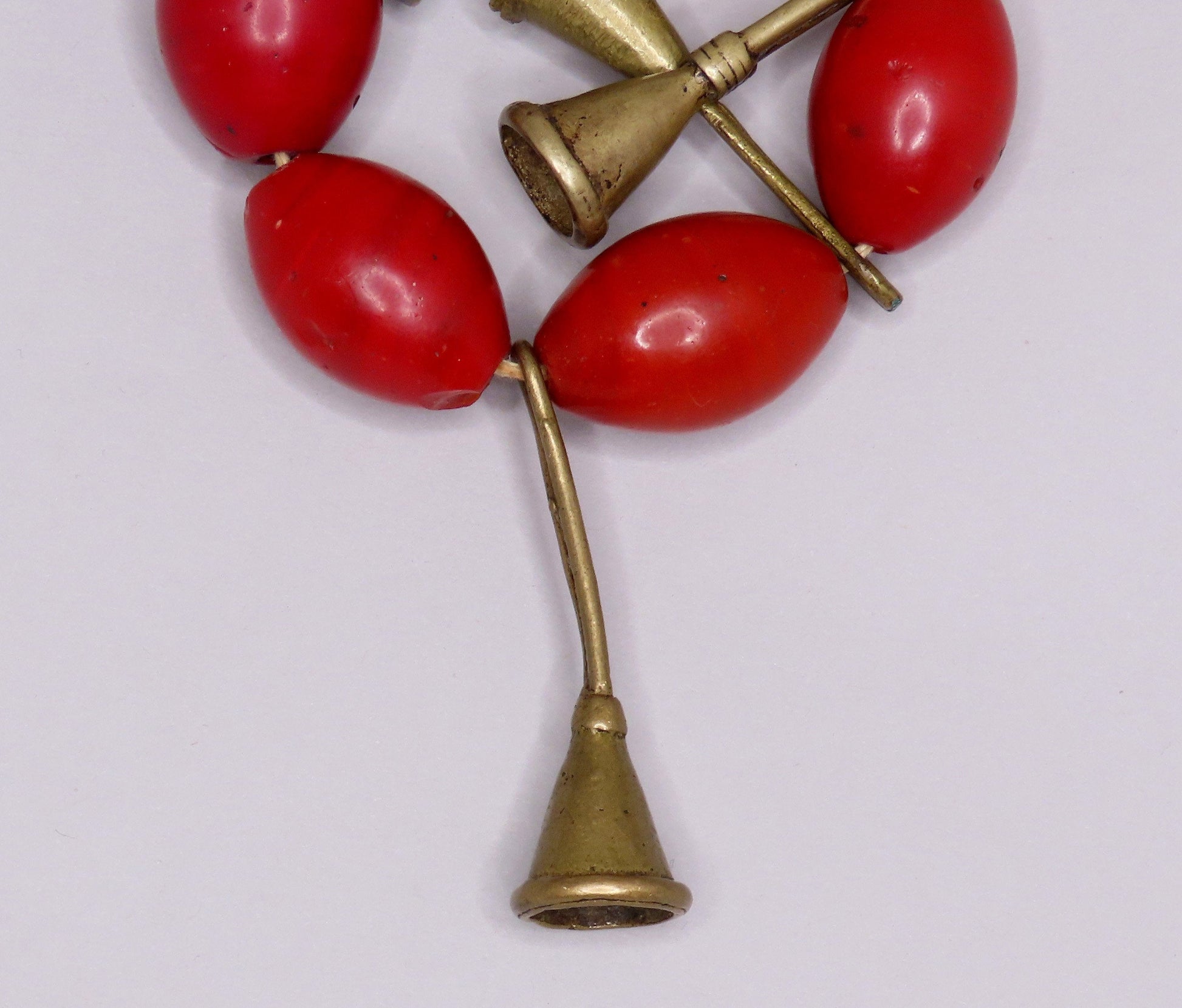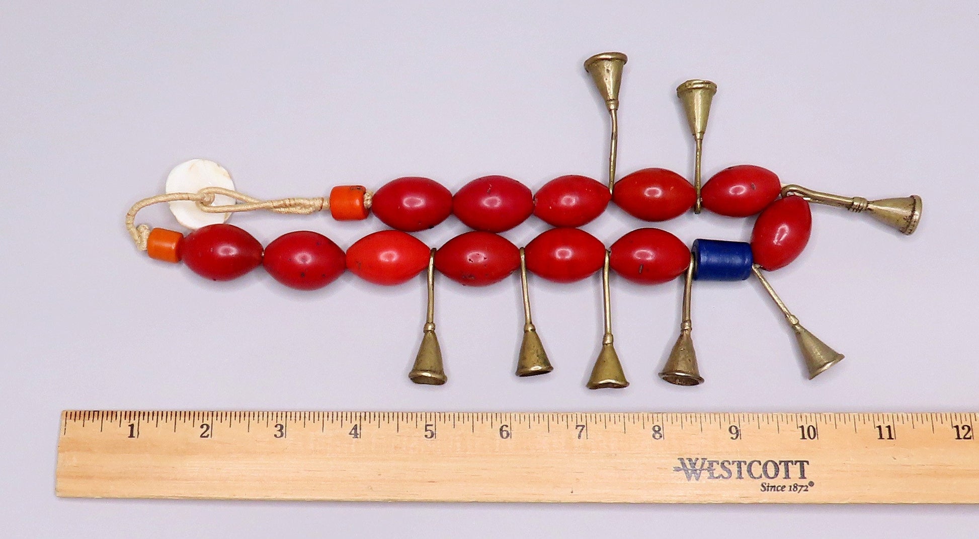 1960s/70s Red Glass Horn Shaped Beaded Necklace Possibly African 20 Inches