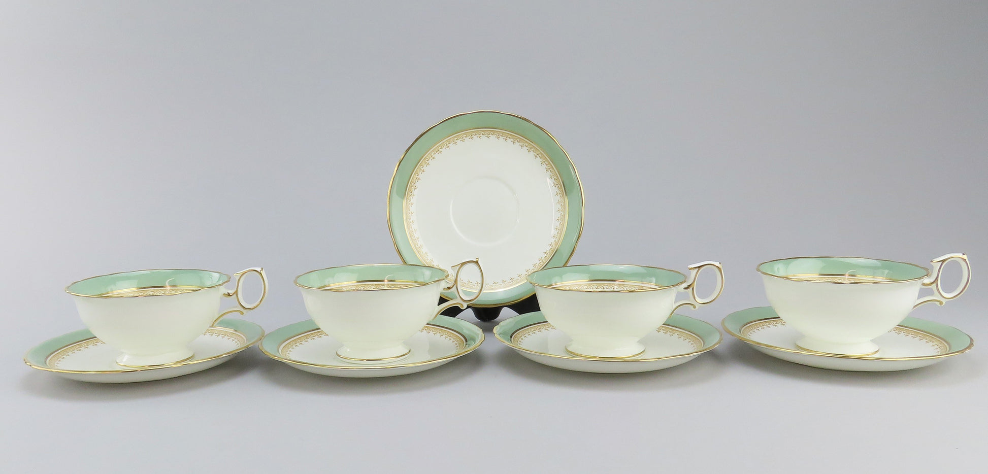 1960s Vintage Wedgwood Eccles Bead Celadon Bone China 4 Cups 5 Saucers Set W4266