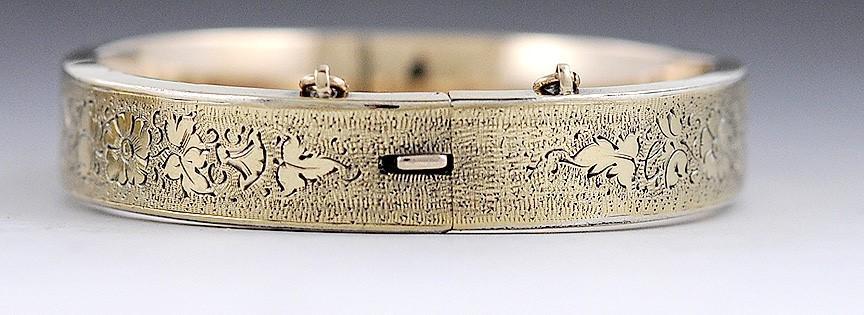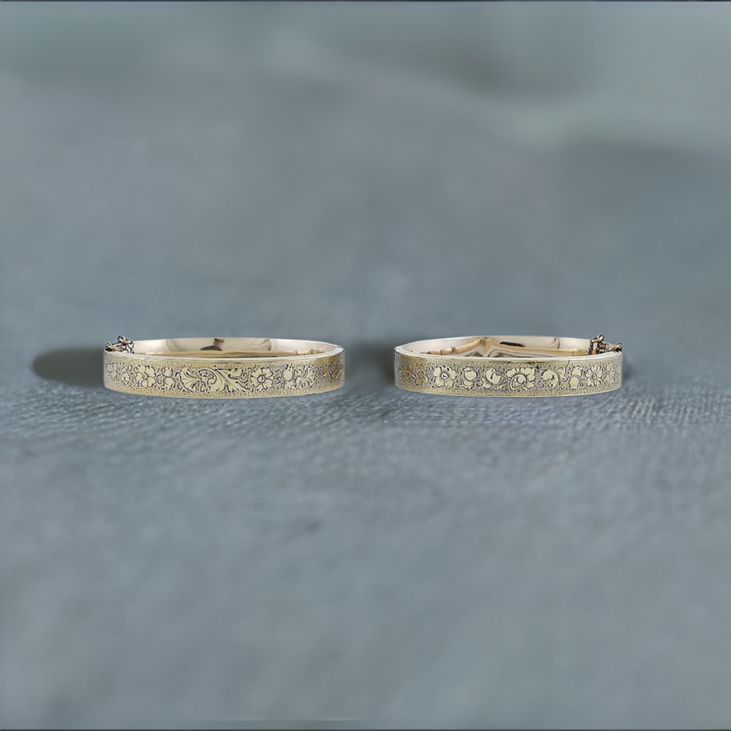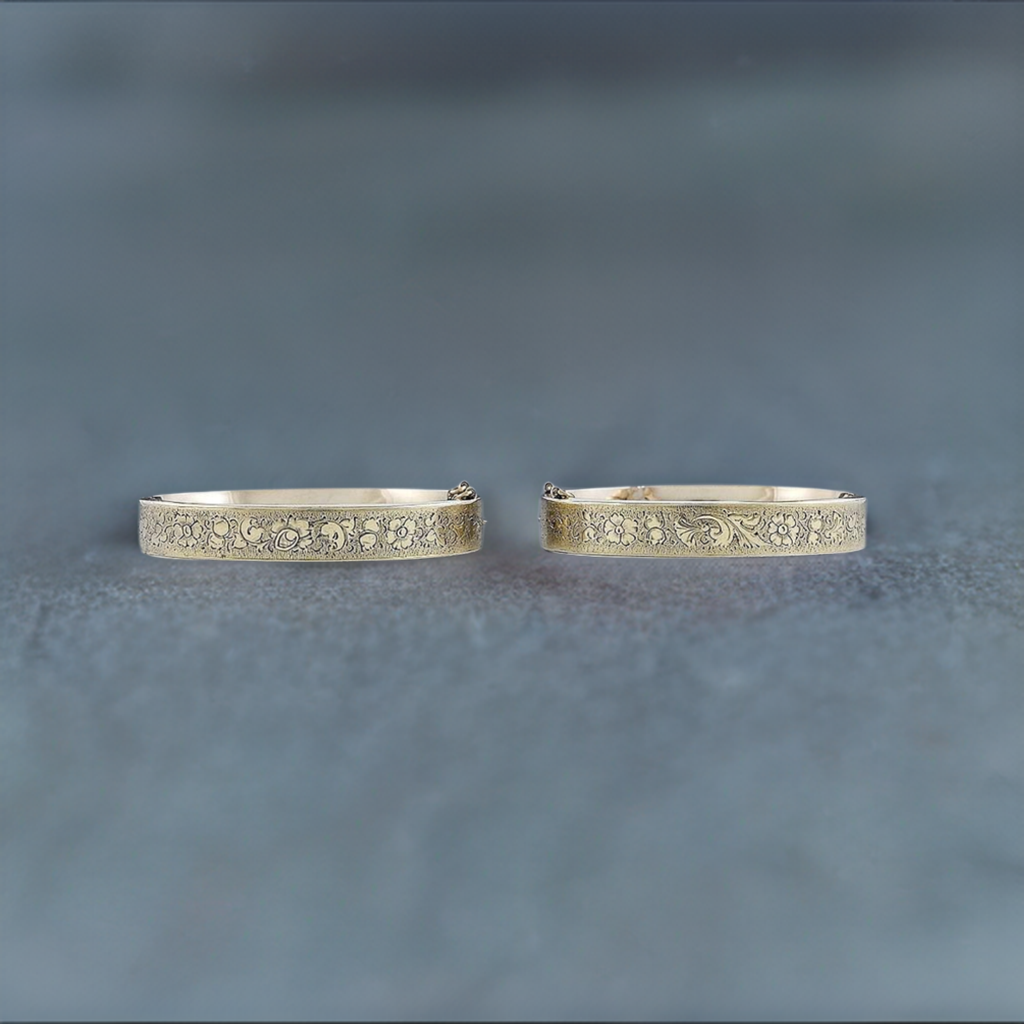 2 American Victorian 14k Gold Engraved Floral Bangle Bracelets