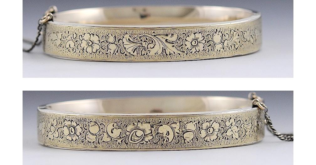 bracelets are beautifully engraved with elegant flowers and ivy leaves rendered