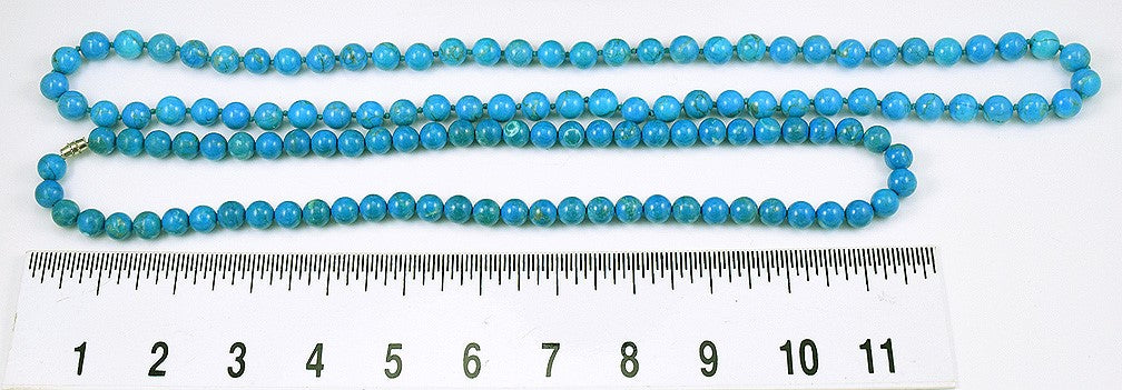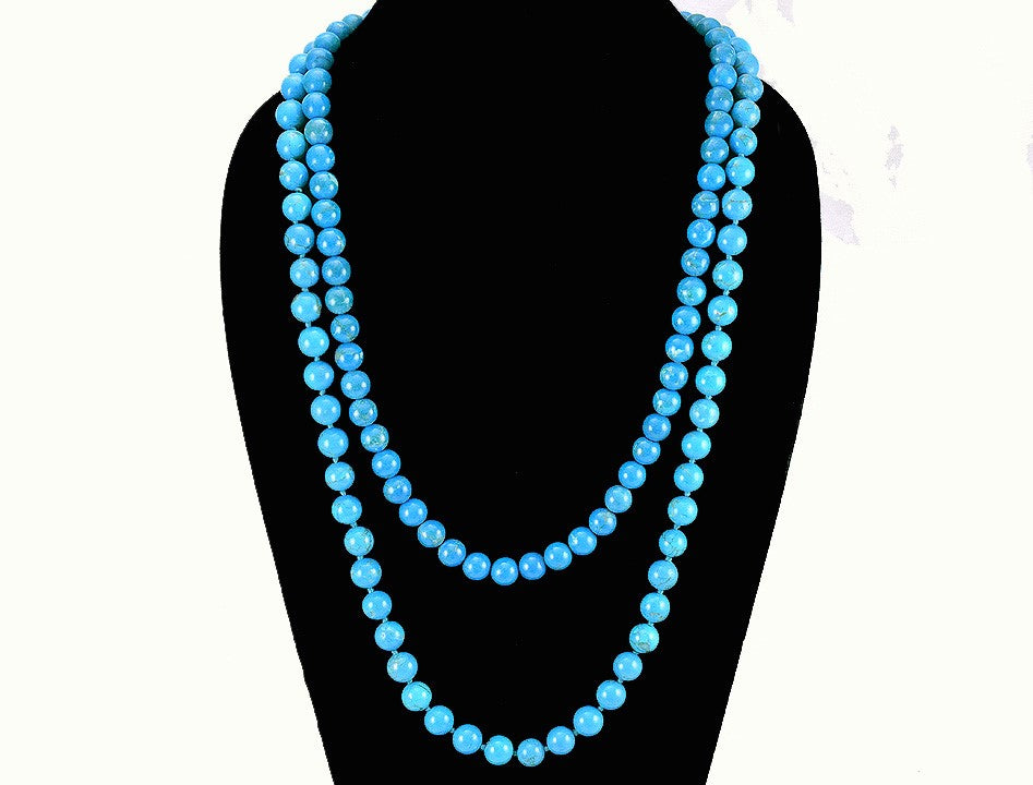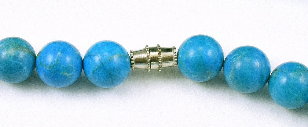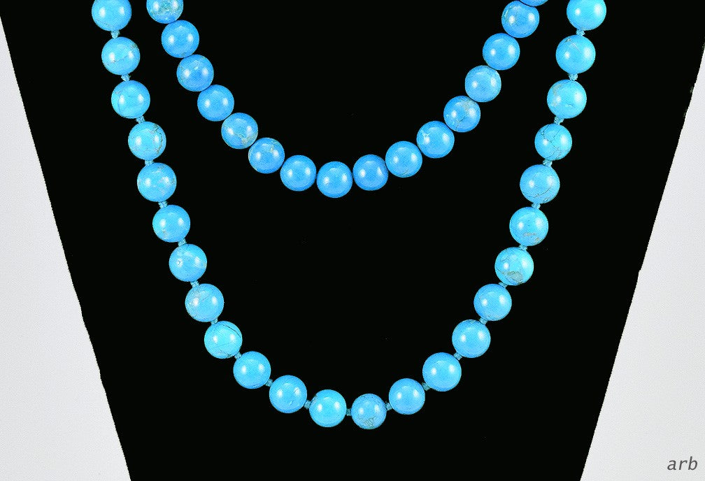 Presented is a pair of fabulous dyed blue jasper beaded necklaces, one with a sterling silver clasp.