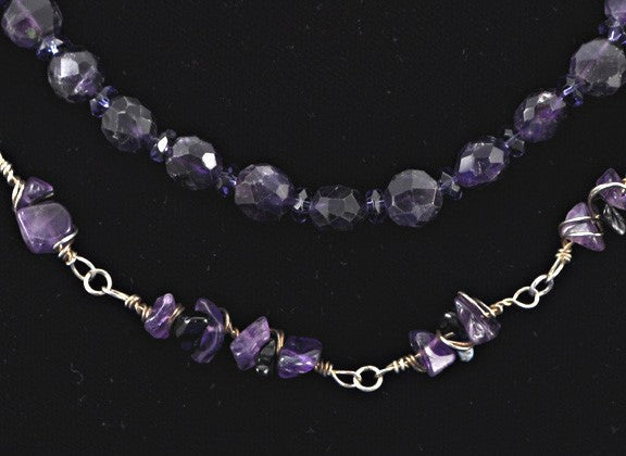 2 Purple Amethyst Necklaces 20 1/2" and 17 1/2" Faceted