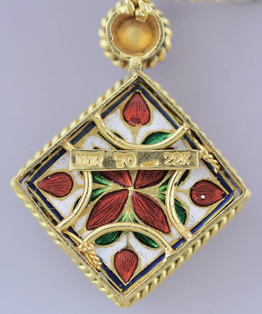 20-22kt Gold Ruby Diamond & Enamel Mughal Style Indian Nur Pendant Necklace