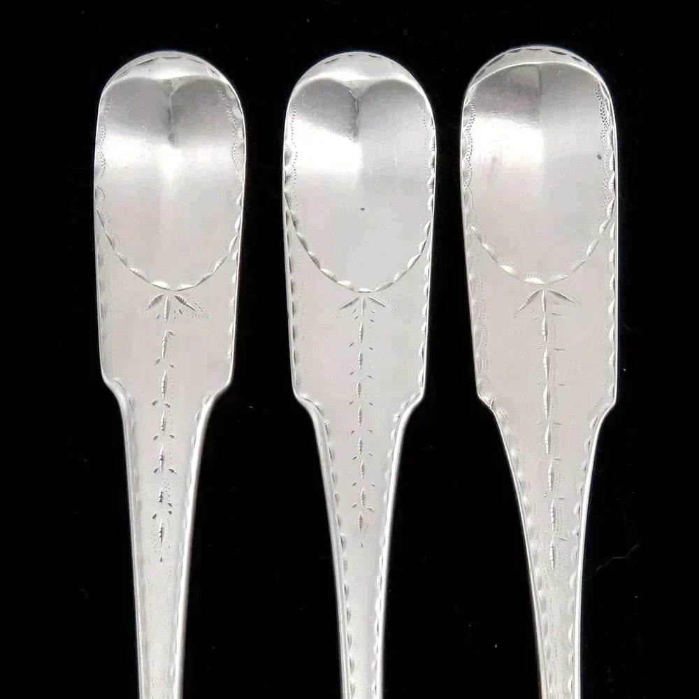 3 Antique Late 1700's Philadelphia Coin Silver Brite Cut Forks 8"