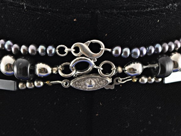 3 Genuine Pearl Hematite Sterling Silver Beaded Strand Necklaces Jewelry Set
