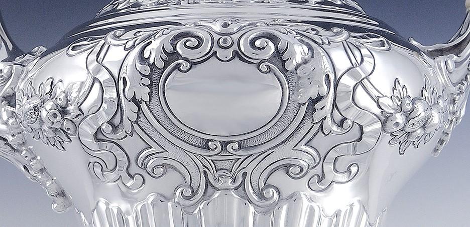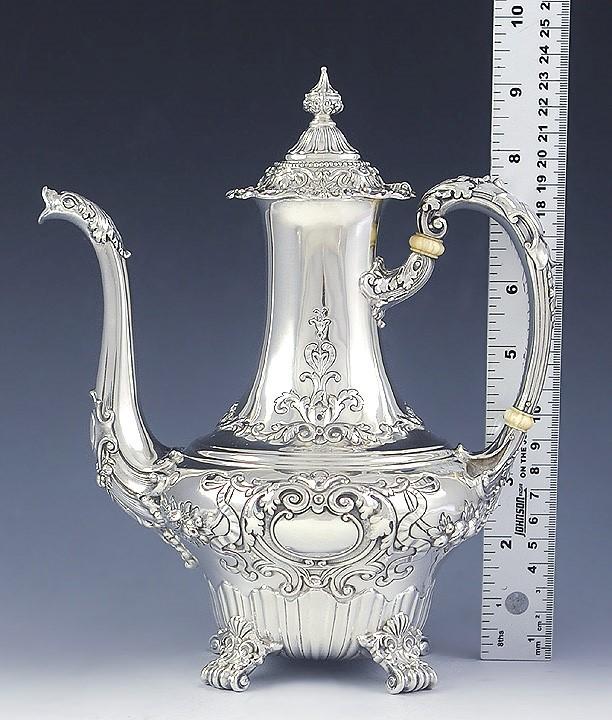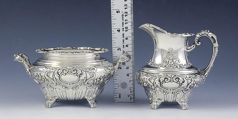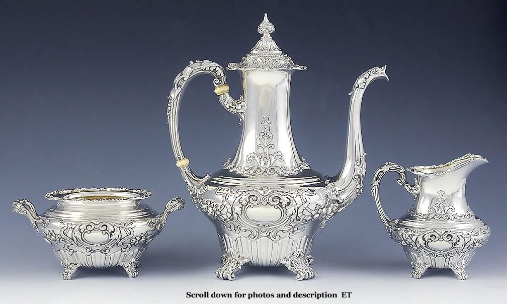 3pc Ornate Gorham Sterling Silver Demitasse Tea Coffee Set c1900