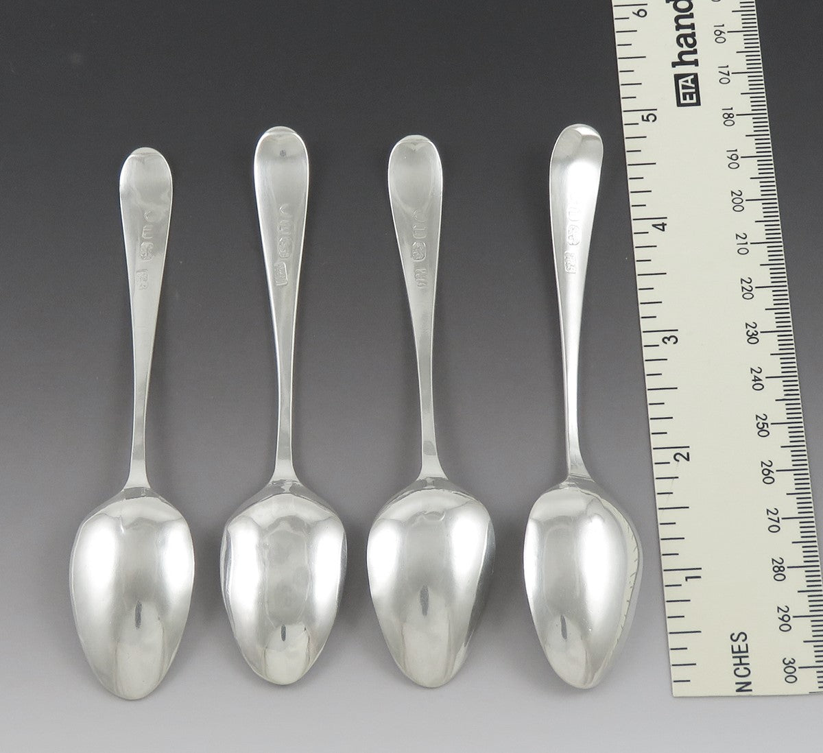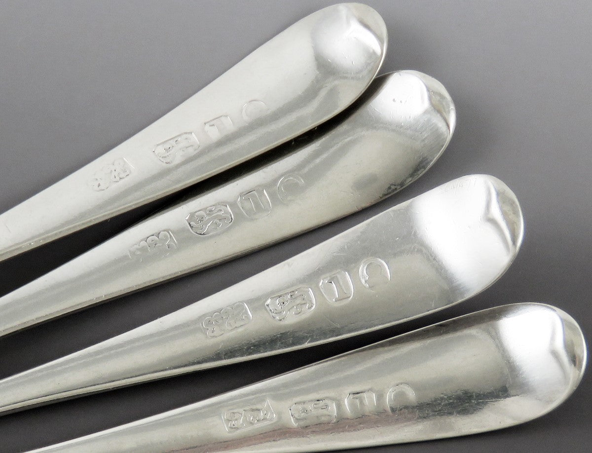 4 Antique 1786 Hester Bateman Georgian English Sterling Silver Coffee Spoons