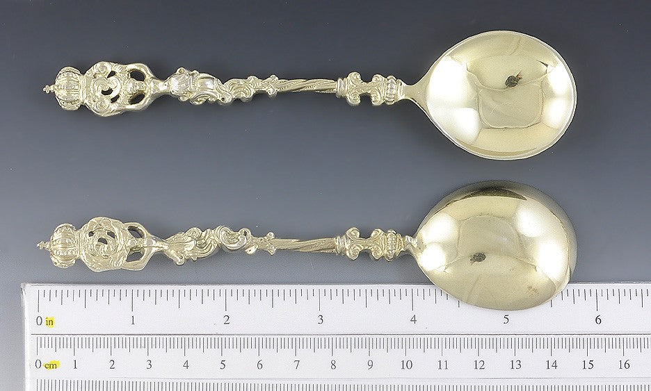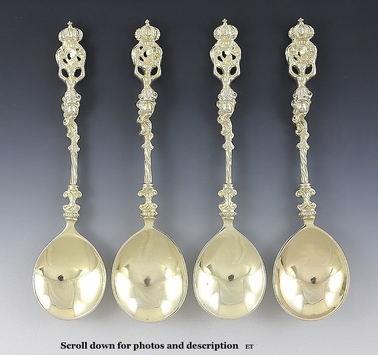 4 Antique Art Nouveau Gilt German Silver Crown Apostle Style Spoons