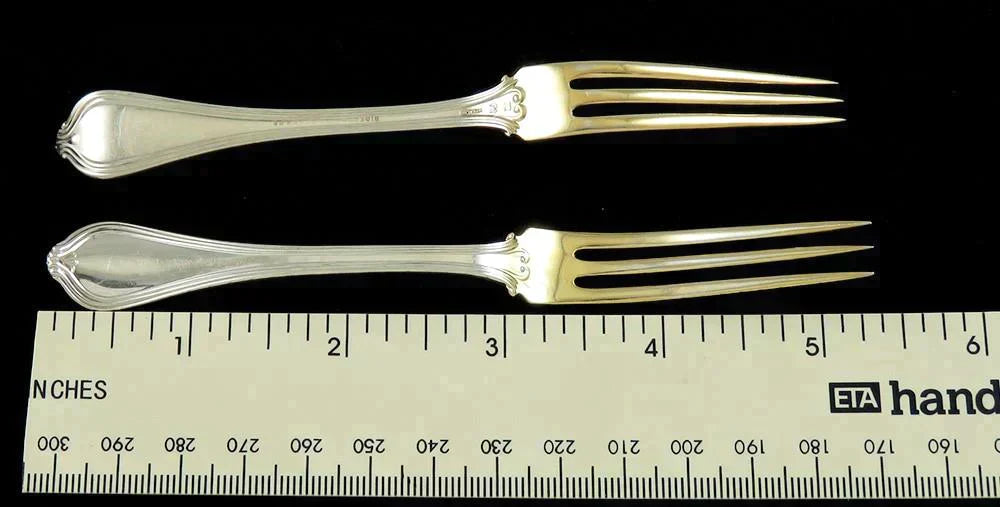 This set is in great overall condition, especially considering age. There is slight wear to the gold wash, but there are no damages or repairs.