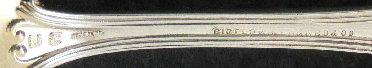 The back of each fork is marked for Towle, sterling silver purity, and a retailer's mark for Bigelow, Kennard & Co.