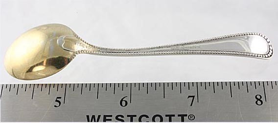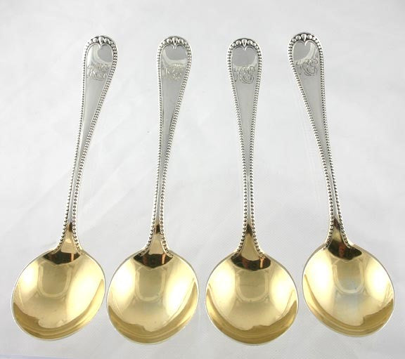 The spoons are in excellent condition. The gold wash on the front and back of the bowls of the spoons is in good shape. There are no cracks, no breaks, no repairs, no monogram removals and no problems of any kind.
