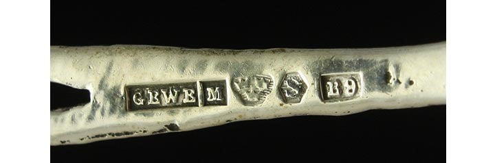 The forks are marked on the underside of the handles with the triple crowns for Sweden, the initials GEWE, the letter M, the letter S, and the date mark B9 for 1952.