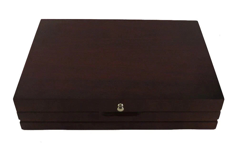 We are including with the set a brand new wooden flatware storage chest as a free bonus gift, visible in the final photo. Please let us know if you do not want the flatware chest, and we will not ship it.