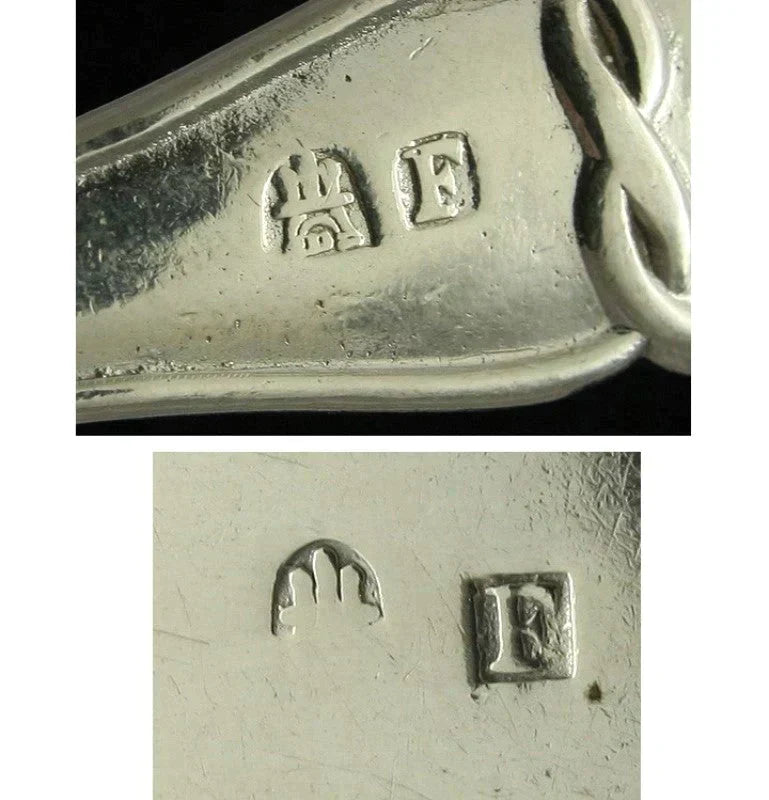 Each piece has a 3 tower mark and a mark of The letter F. We have tested these pieces and guarantee them to be at least 800 purity silver.