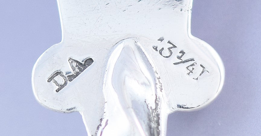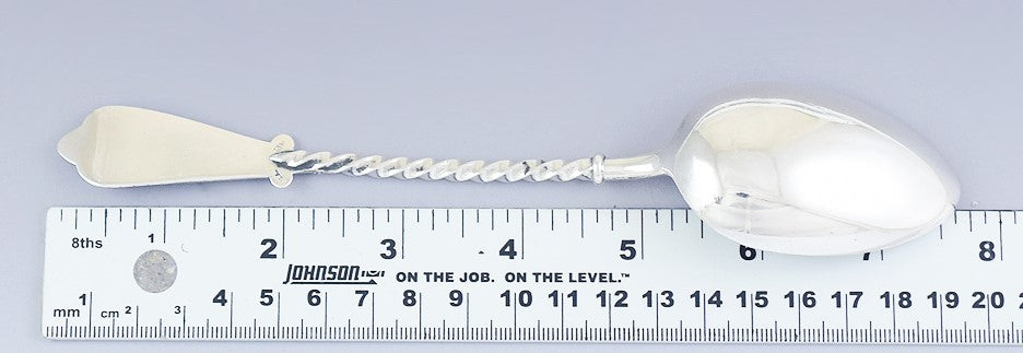 The spoons are stamped on the back of the handle with the maker's mark for David Andersen, as well as the 13 1/4 lodig mark, for either 828 or 883 purity silver, depending on if the scale is out of 15 or out of 16.
