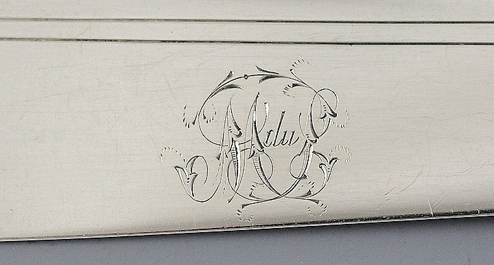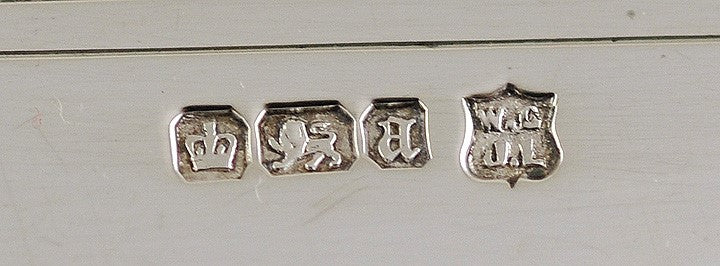 Each of the knives is hallmarked on the blade with the lion passant for sterling silver, the crown for the city of Sheffield, the date letter a for 1893, and the maker's mark for William Gibson & John Lawrence Langman.