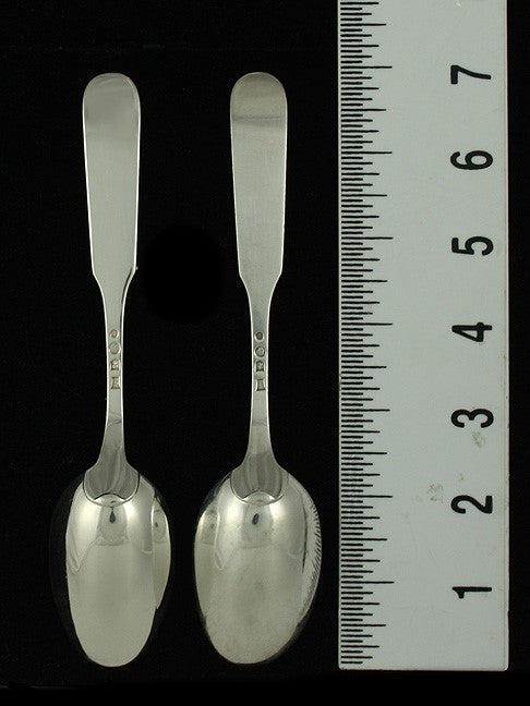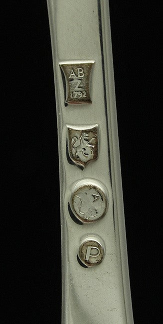Each spoon is hallmarked on the reverse with the lion mark for Dutch first standard 935 purity silver, the Minerva’s head duty mark, the date letter ‘P’ for 1925, and a maker’s mark of ABZ 1792 for A. S. Bonebakker.