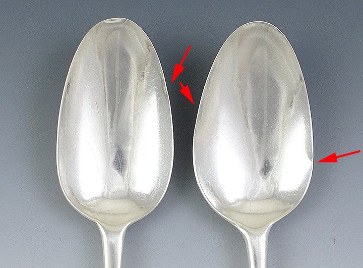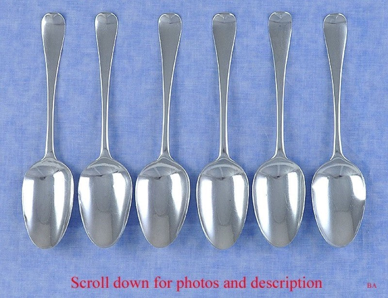 6 Antique English Georgian Sterling Silver 1749 Classical Form Table Spoons