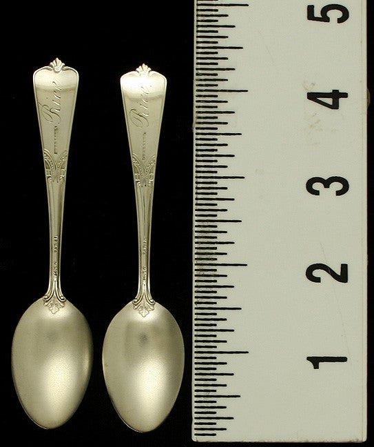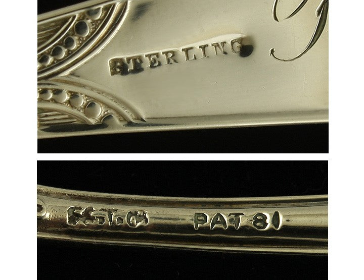 The spoons are marked on the reverse with Gorham’s old company hallmarks, Sterling, and Pat. ’81.