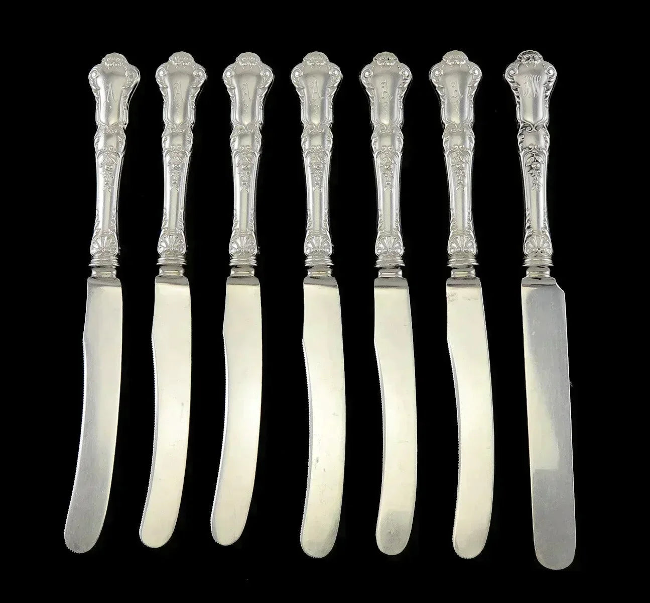 6 Antique Sterling Silver Gorham Baronial 1898 Orange/Citrus Knives 7 3/8"