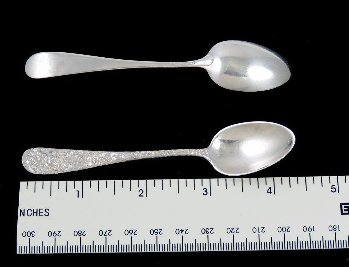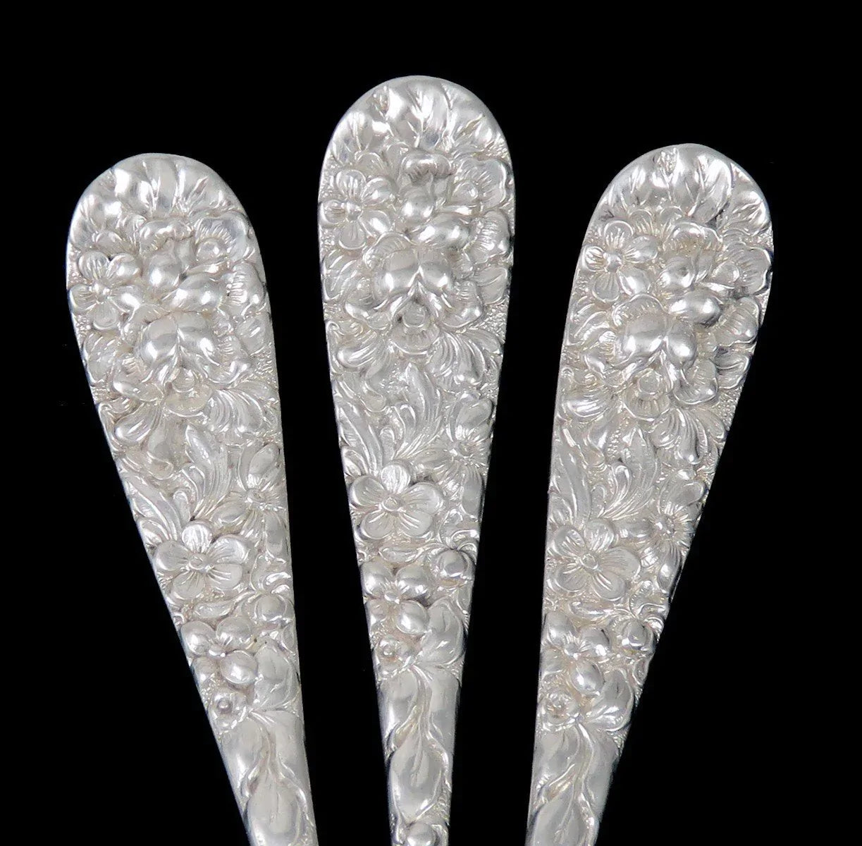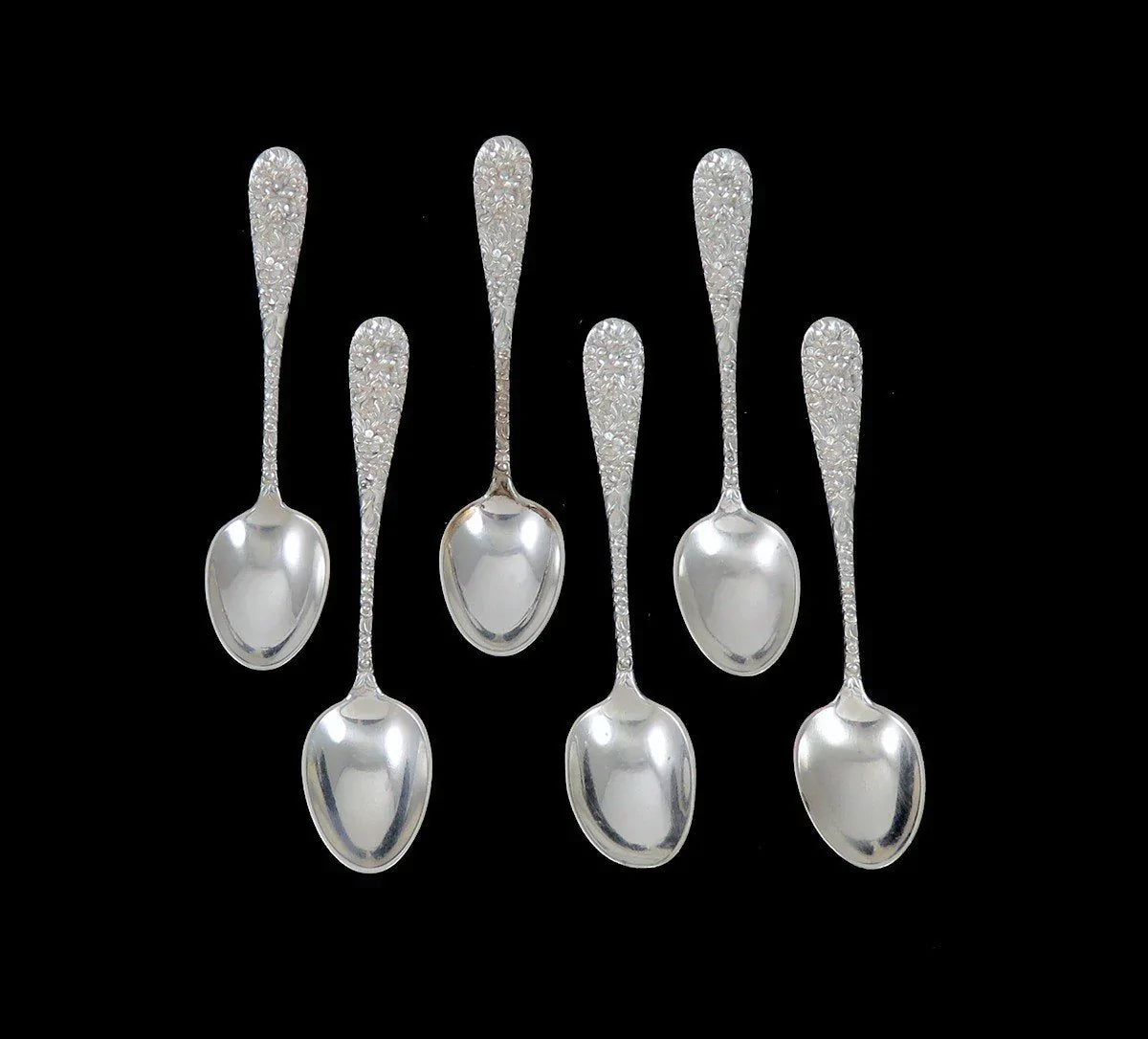 6 Antique Stieff Rose Repousse Flower Sterling Silver Demitasse Spoons 4 3/8"