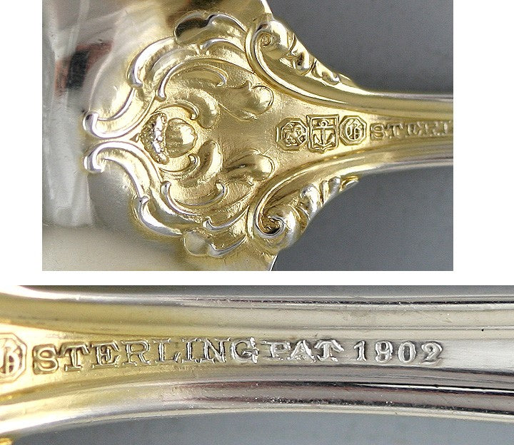 The spoons are marked on the underside of the handles with Sterling for sterling silver, the Gorham marks and PAT. 1902 for the patent year.