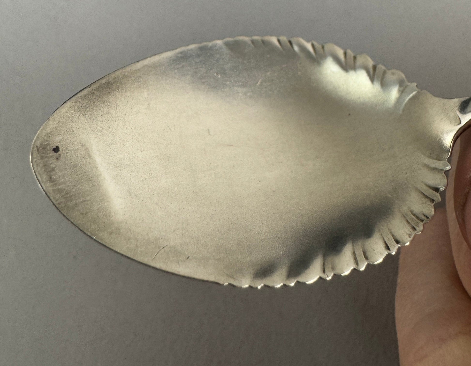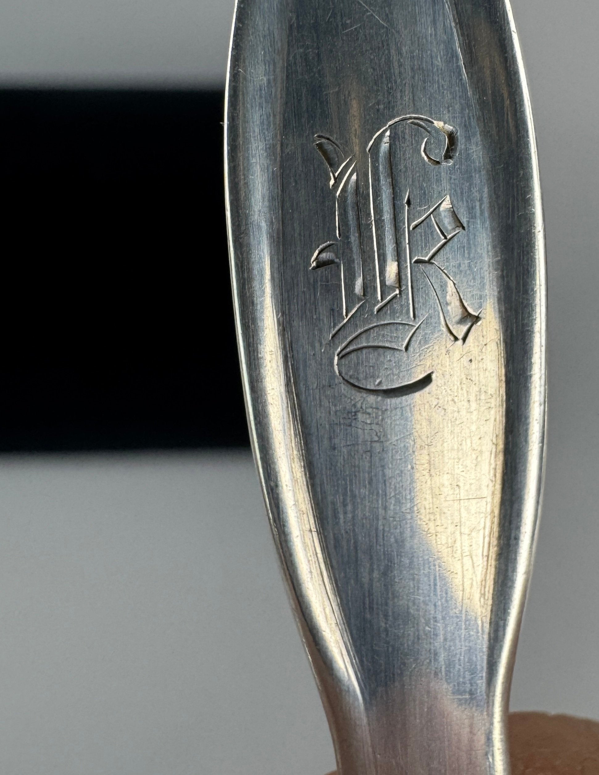 The overall condition is excellent. One spoon has a bend near the tip of the bowl. The same spoon also has another bend at the other end. Otherwise there are no dents, no breaks, no repairs, no monogram movables and no other problems.