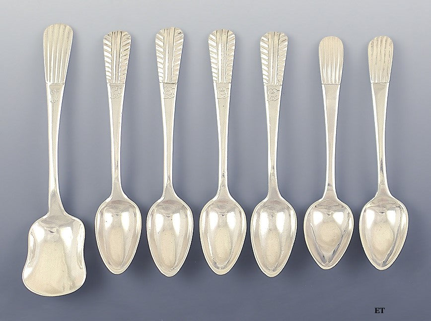 7 Antique c1860 Portuguese Silver Coffee Tea Dessert Spoons Sugar Shovel