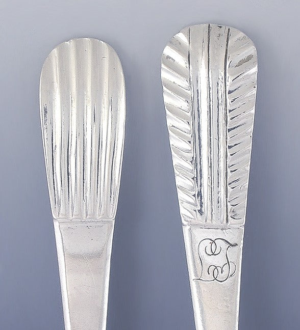 The spoons are in great condition. The designs are nice and crisp. There are no dents, no splits, no monogram removals, and no repairs.