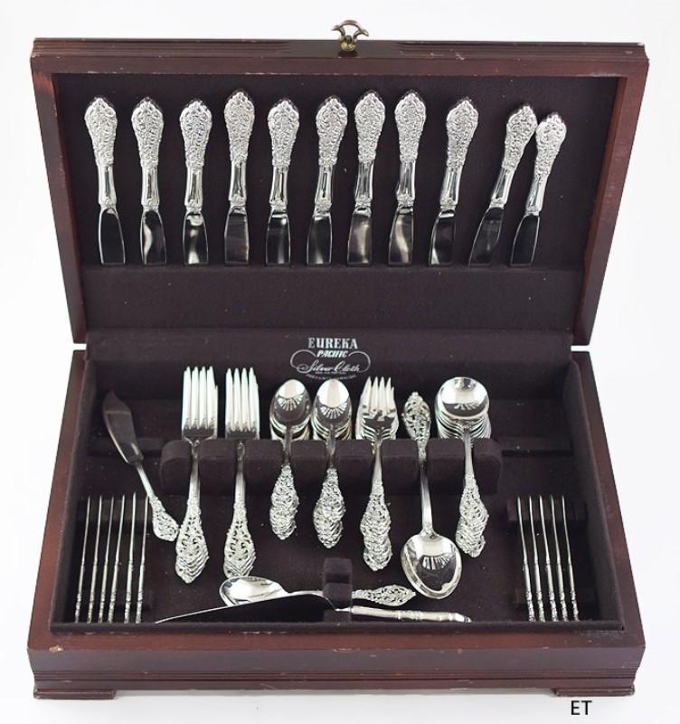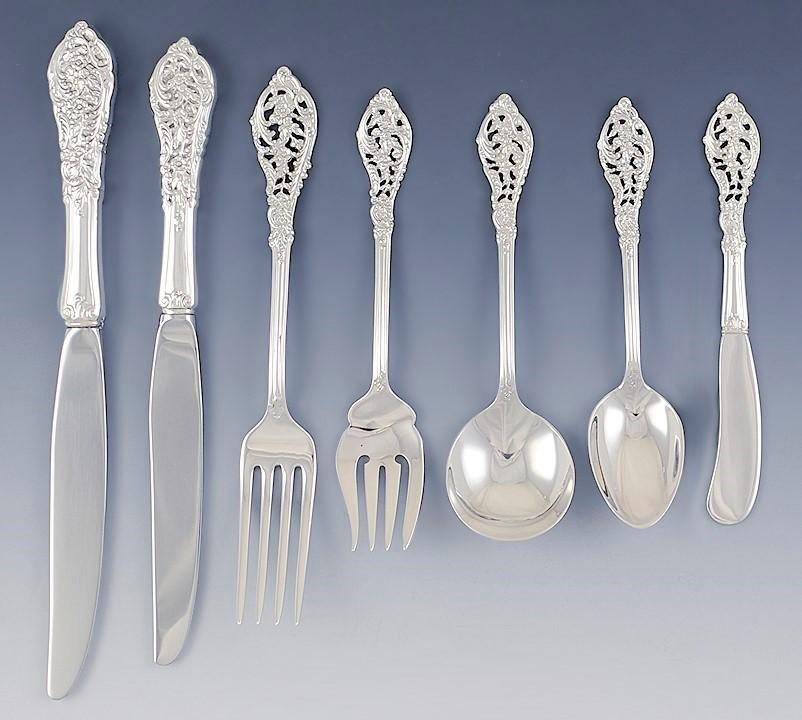 78pc Reed Barton Sterling True Dinner Flatware Set Florentine Lace/Trianon