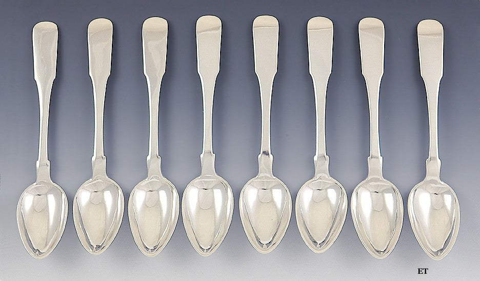 8 Antique 1845 Danish 826 Silver Fiddle Prahl Large Soup Serving Spoons 8 5/8"