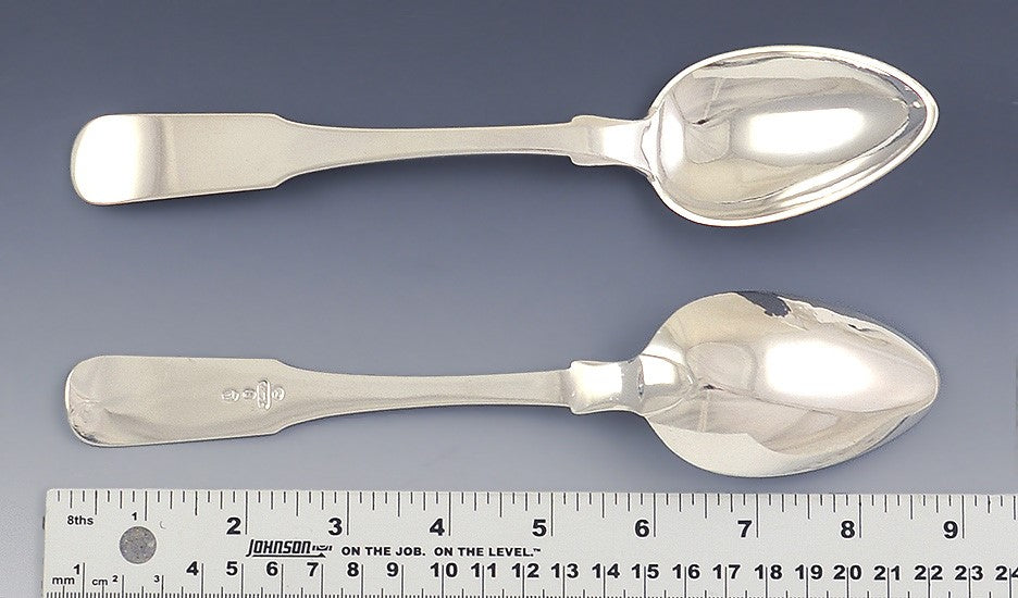 These spoons are in great condition. There is some minor surface wear, but nothing excessive. There are no splits, no breaks, no dents, no monograms, no monogram removals, and no repairs.