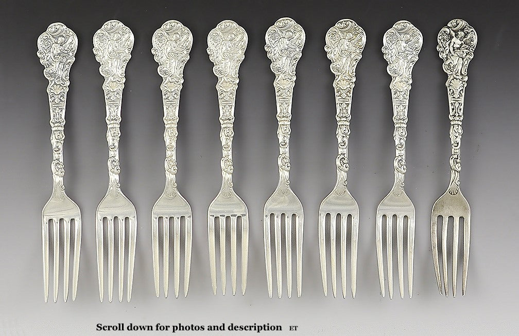 8 Antique Art Nouveau Sterling Silver Gorham Versailles Forks 7" NO MONO