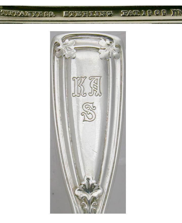 Each piece is marked Tiffany & Co, sterling and patent 1909, and the letter m indicating a production date of 1907 to 1937.