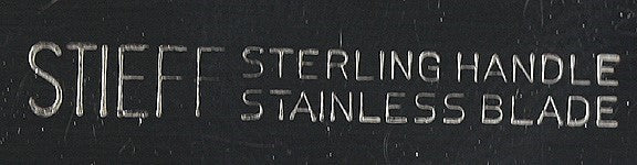 Presented is a fine 8 piece set of sterling silver place settings made by the Stieff Company. The two place settings are done in the Royal Dynasty pattern which was first produced in 1966. The two knives have sterling silver handles and stainless steel blades. The other six pieces are solid sterling silver. These place settings have never been monogrammed or engraved.