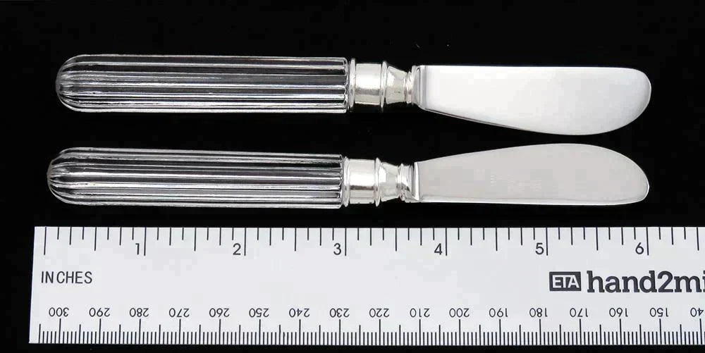 9 French Siecle Fidelio Crystal & Silver Plate Cheese/Butter Knives