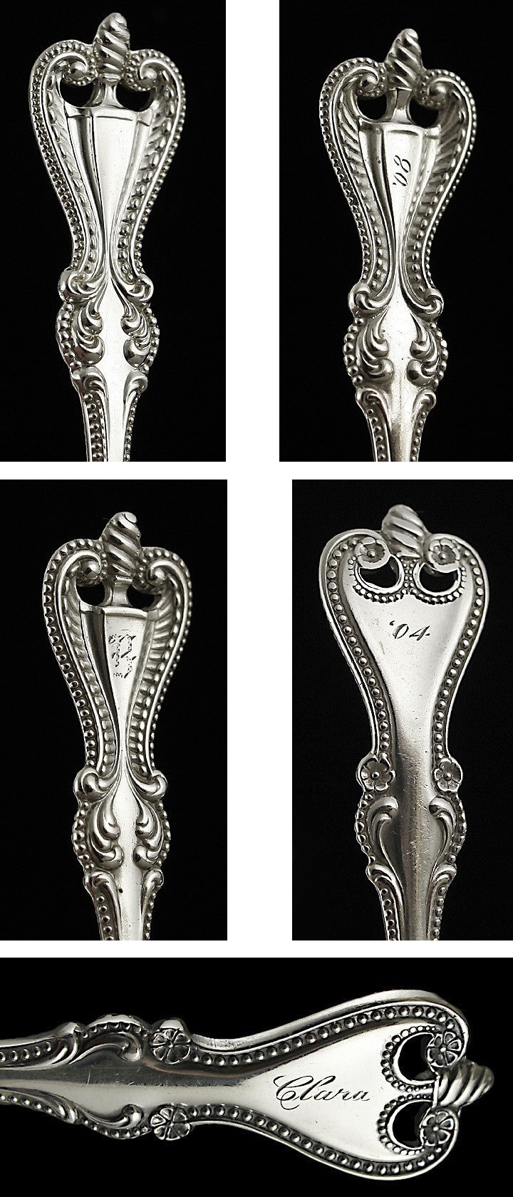 Each piece is marked on the reverse with 925-1000, a maker’s mark for Towle, Sterling and Pat. 1895.