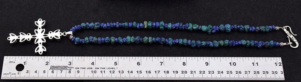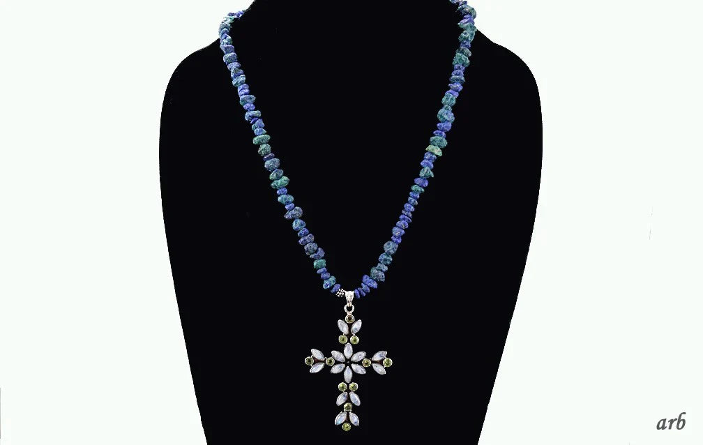 Amazing Necklace of Sterling Silver Cross w/ Peridot Moonstone Lapis Lazuli