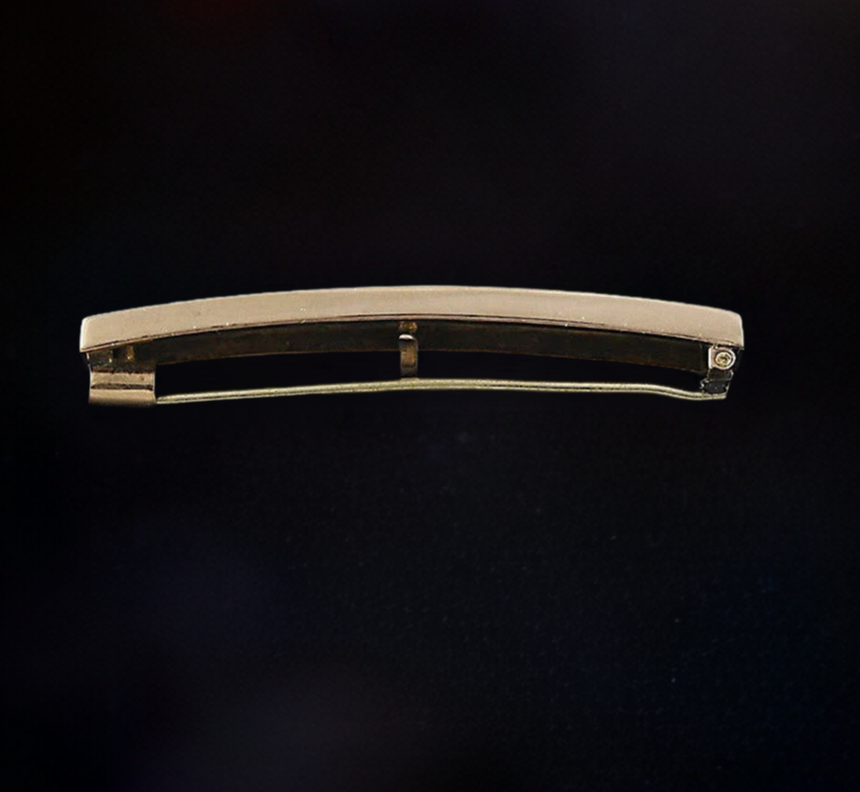 The pin is not marked. We have tested it with nitric acid and guarantee it to be 10K gold.