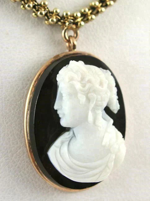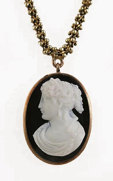 American Victorian 14k Gold & Hardstone Cameo Necklace