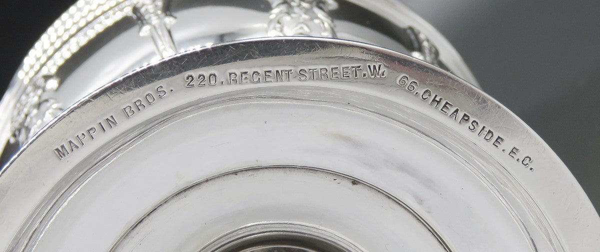The body and lid bear the leopard's head for the city of London, the lion passant for sterling silver, a date letter d for the year 1899 and a maker's mark for the Mappin Brothers.