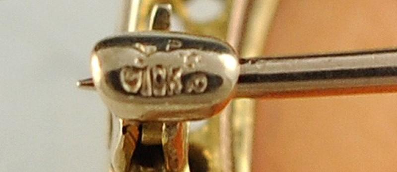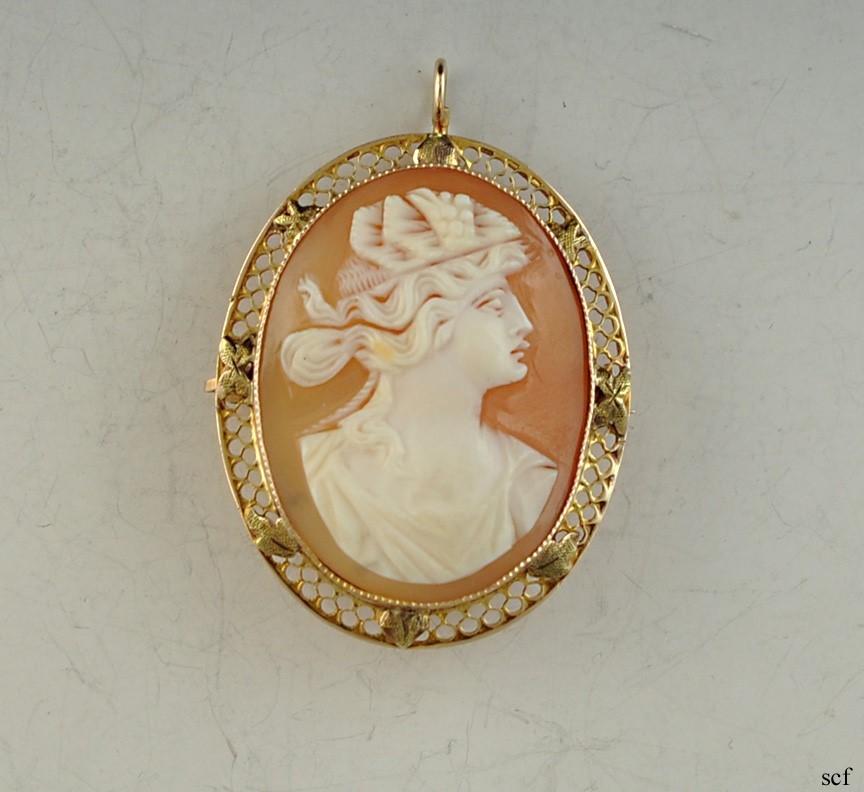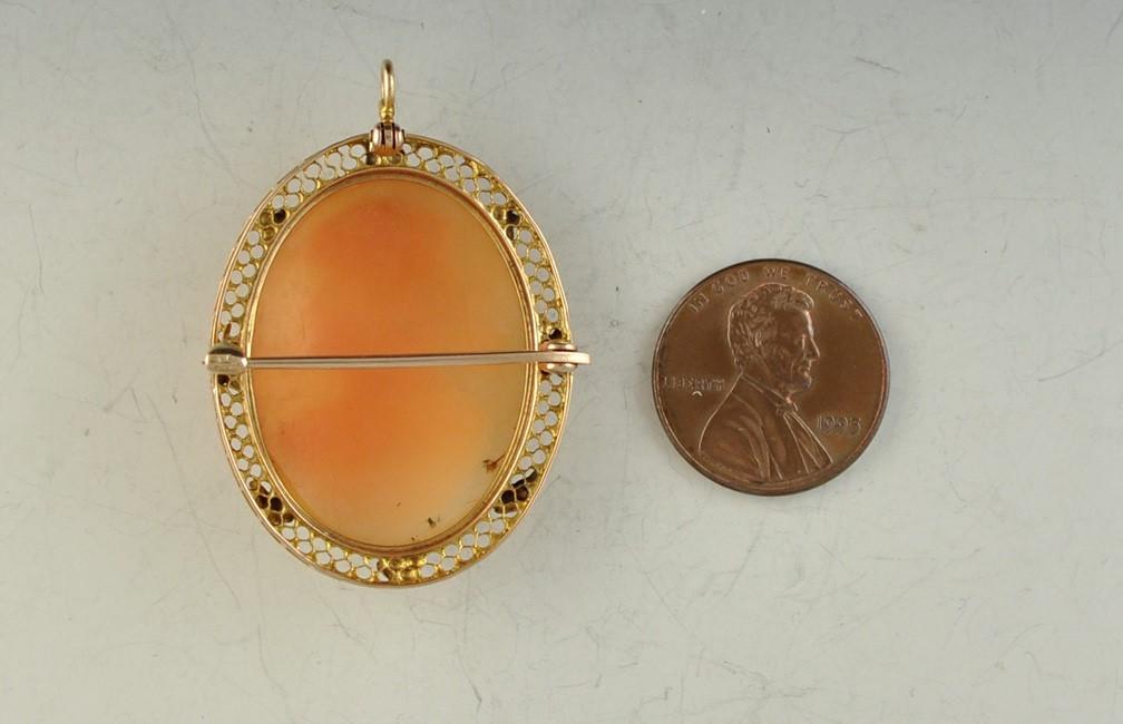 Antique 10K Yellow Gold Filigree Carved Cameo Pin Brooch Pendant