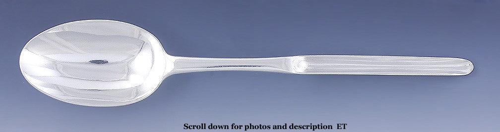 Presented is a wonderful English Georgian sterling silver marrow scoop spoon. This piece dates to 1748. The scoop is double ended, with a regular spoon end and a narrow scoop end for scooping marrow out of bones. Both the spoon end and the scoop end face the same way. The back of the spoon end has a shell decoration, which is rarely seen on marrow spoons. This is a sturdy, well made piece of English silver, and would make an exceptional addition to any silver collection.