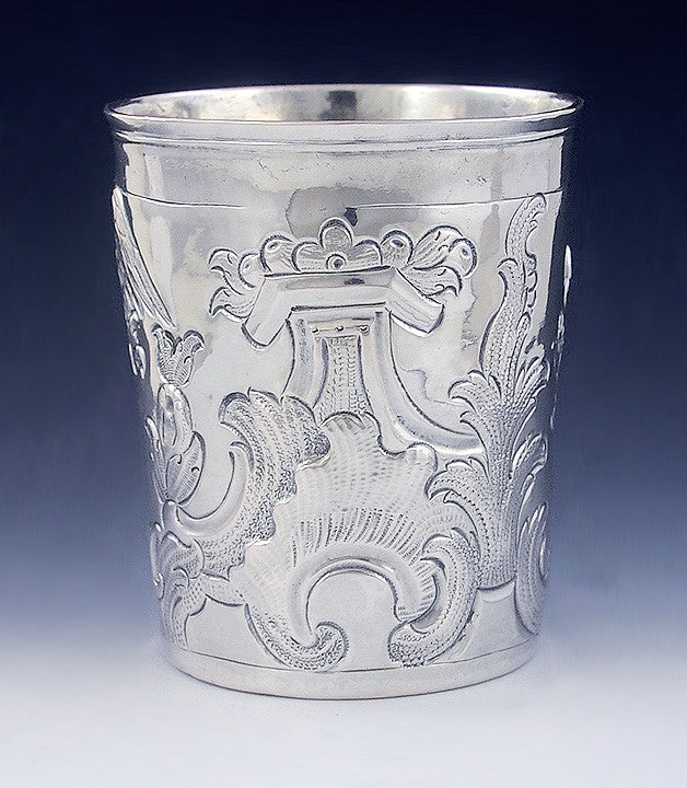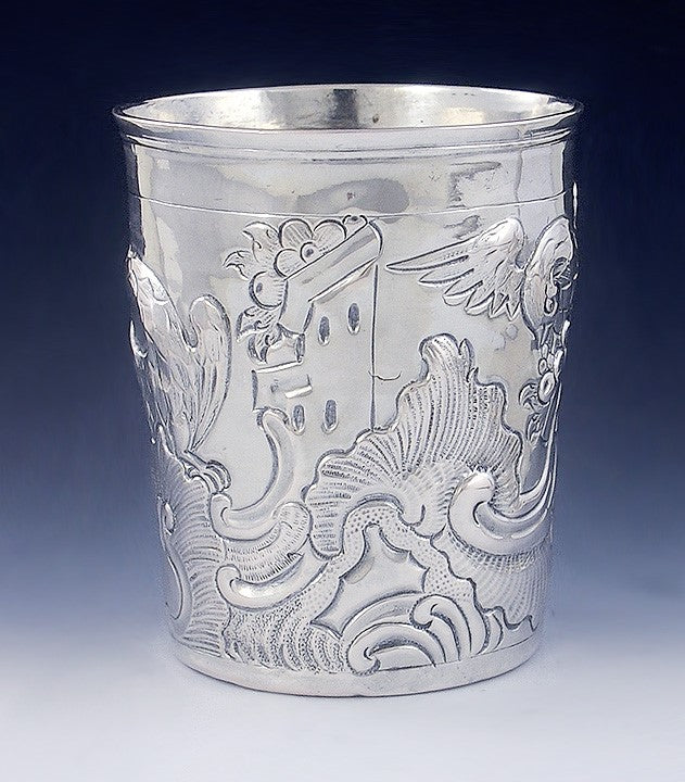 Antique 1778 Russian 18th Century Silver Hand Chased Repousse Beaker Cup/Mug