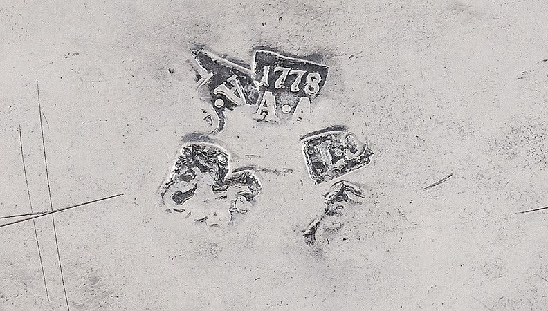 The underside has several Russian hallmarks, such as maker's marks, a city mark and a date/assayer's mark.