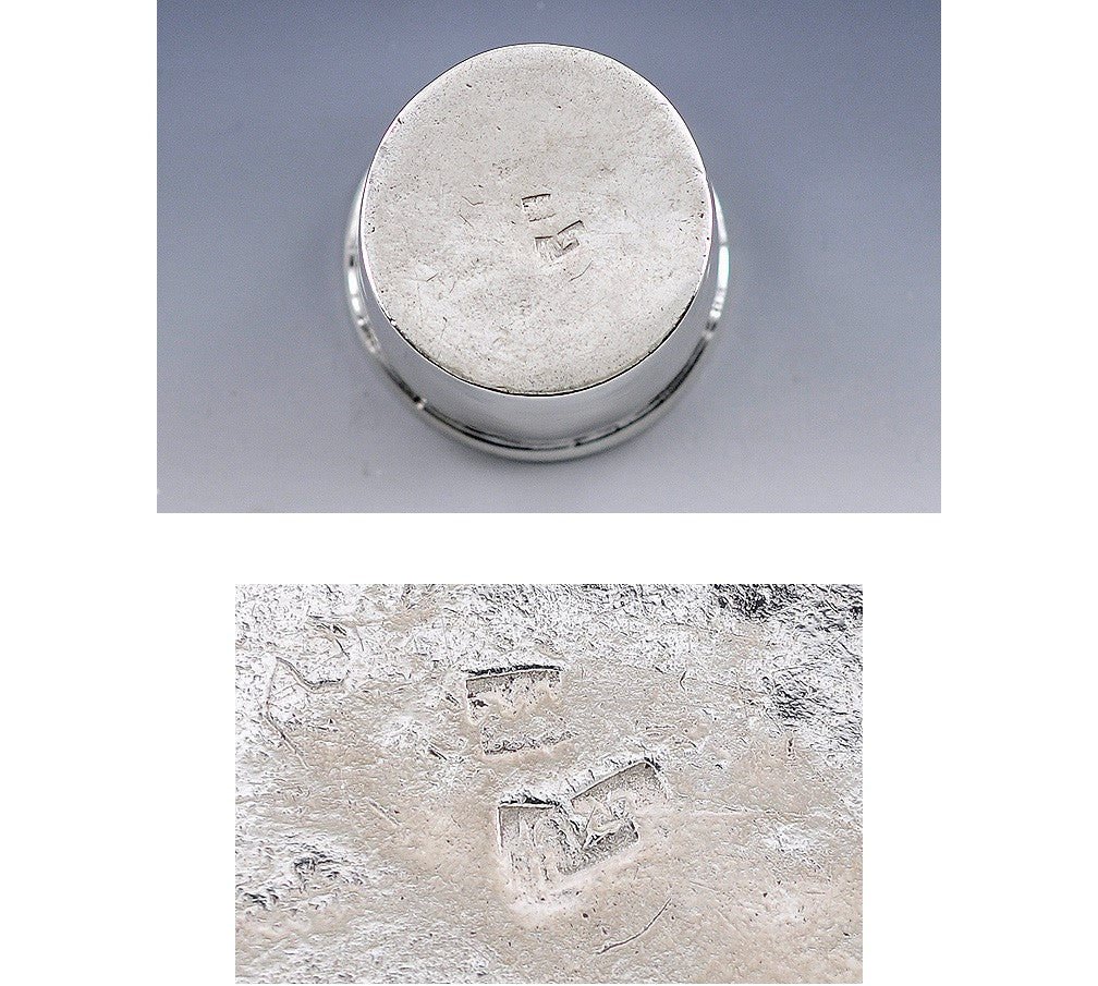 The condition is very good. The interior has ben cleaned. The bottom edge has a solder repair. The top of edge of the cup has a small solder repair, which is really only visible from the inside. There are no breaks, no splits, no monogram removals and no other repairs.
